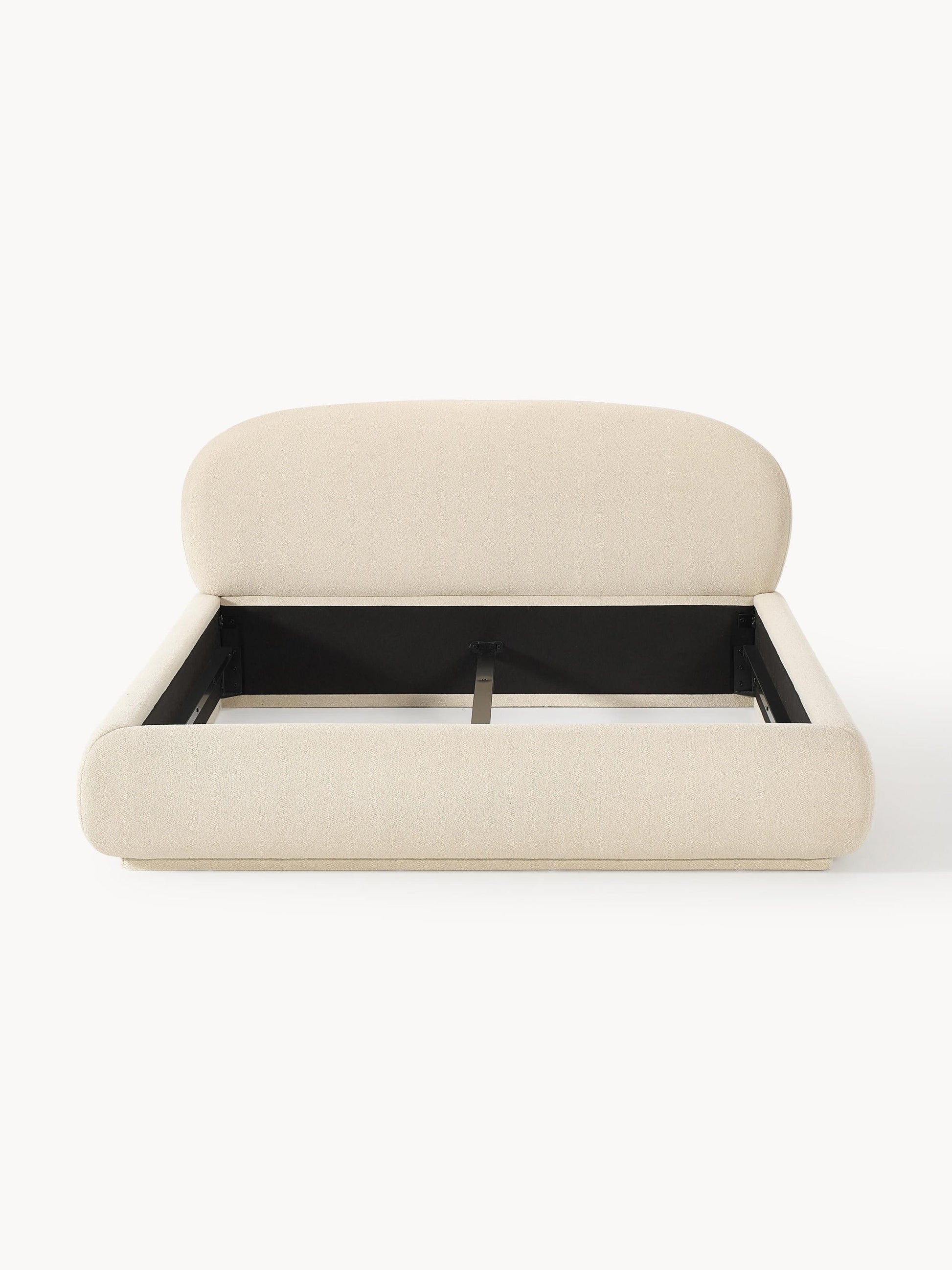 Bouclé stoppad sängram med sänggavel Alba med rundade hörn, B 180 x L 200 cm