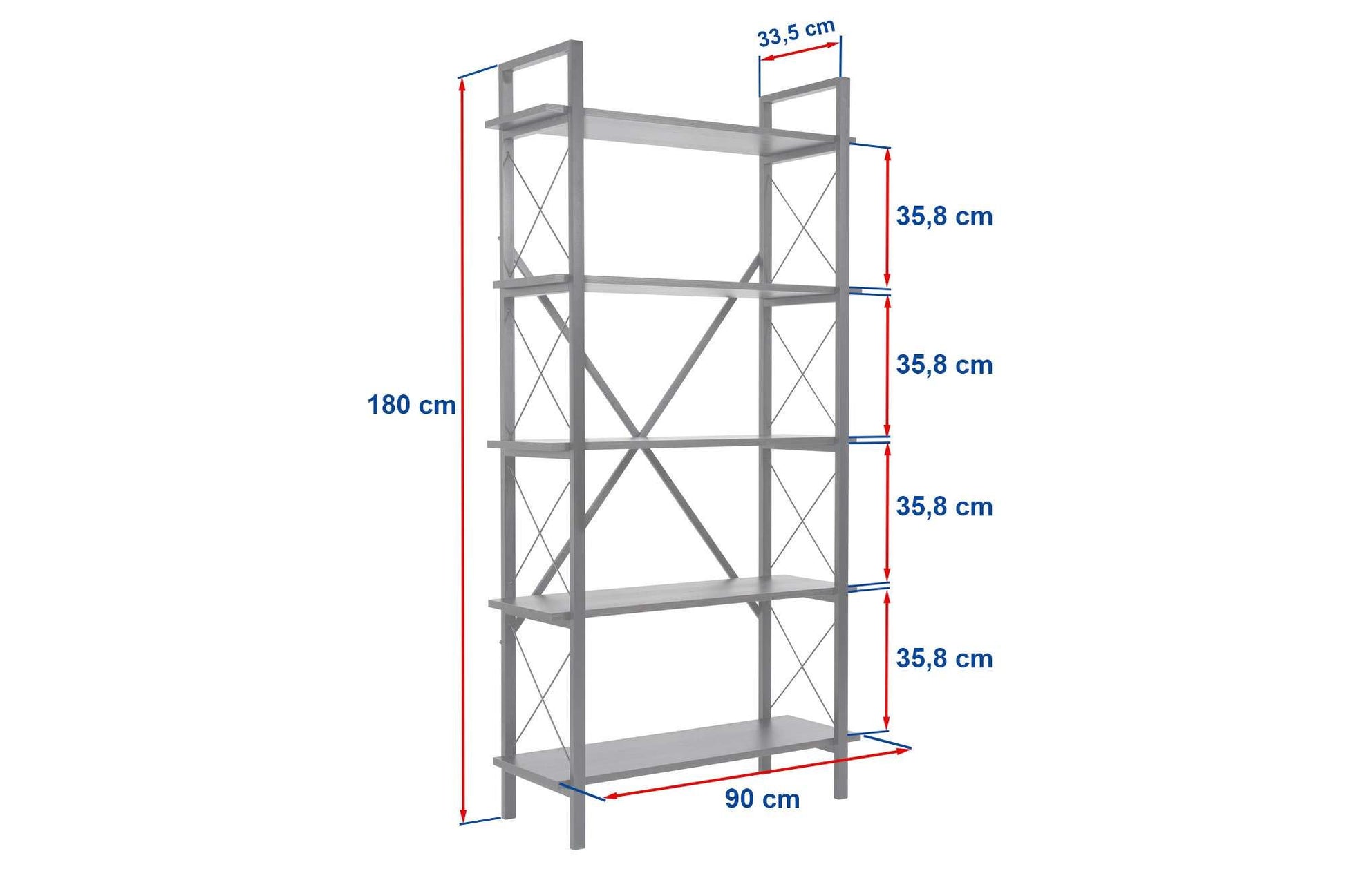 - Bokhyllans storlek: Bredd: 90 cm, Höjd: 180 cm, Djup: 34 cm