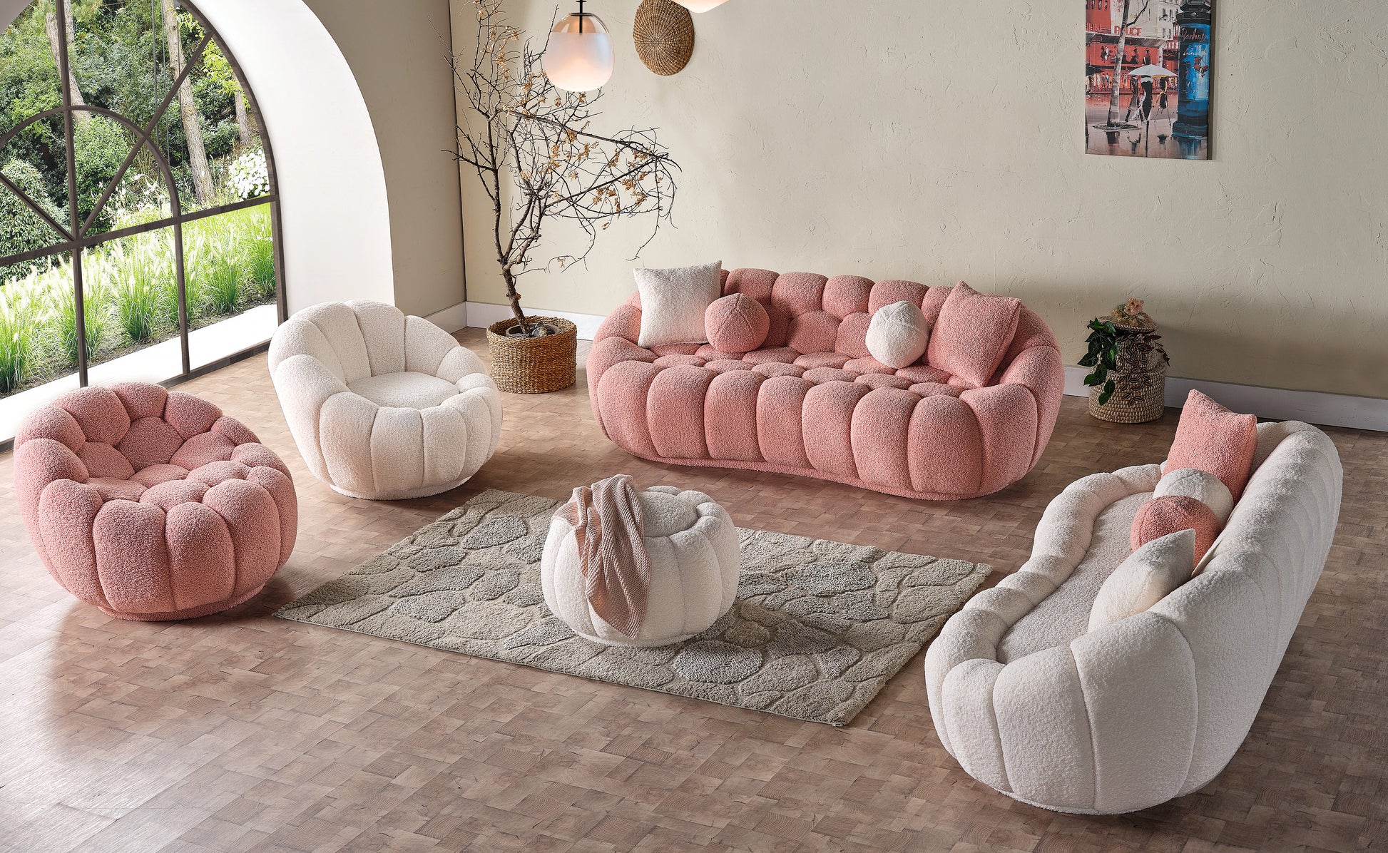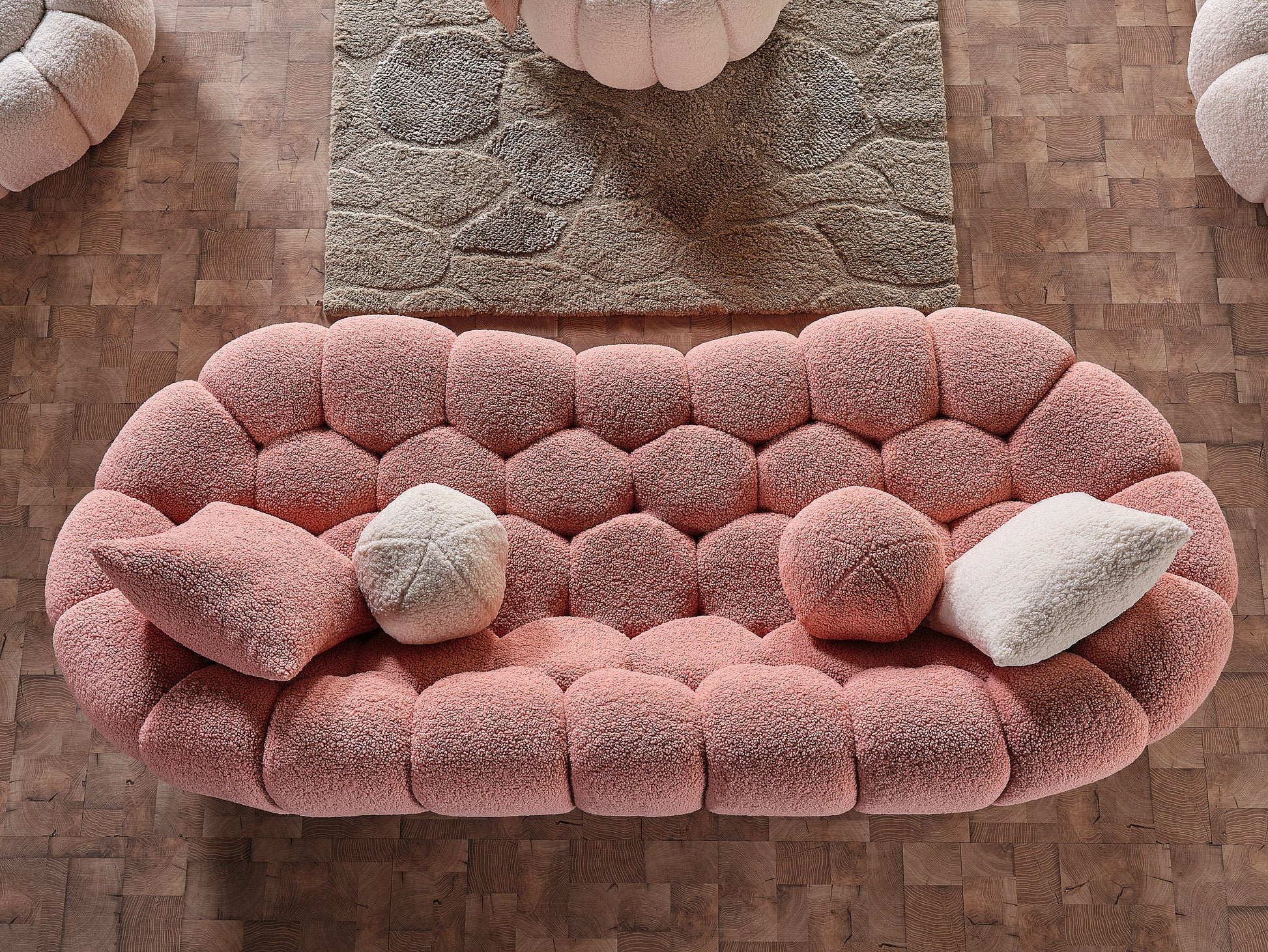 Lyxig och modern soffa i mjuk, puffig design som kombinerar komfort och stil. Perfekt för vardagsrum, lounge eller sociala ytor. Den unika, molnliknande formen ger ett trendigt och exklusivt intryck, samtidigt som de högkvalitativa materialen erbjuder hållbarhet och långvarig komfort. Passar för både minimalistisk, nordisk och modern inredning.
