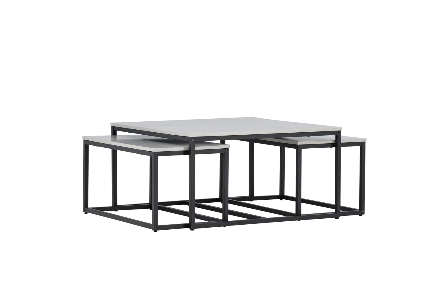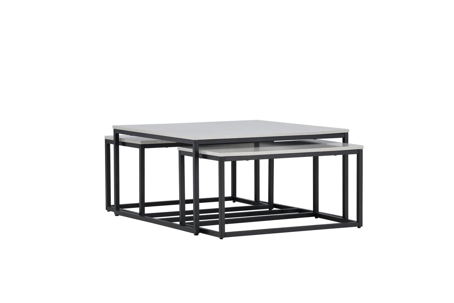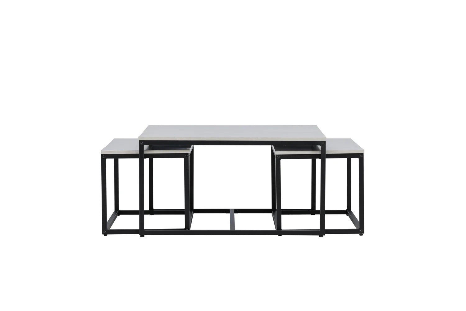 Solna är ett modernt soffbord med stilren design och smart funktionalitet. Det stora bordet (80x80 cm) kompletteras av två mindre bord (73x38 cm) som enkelt skjuts in under när de inte används – perfekt för flexibla ytor.